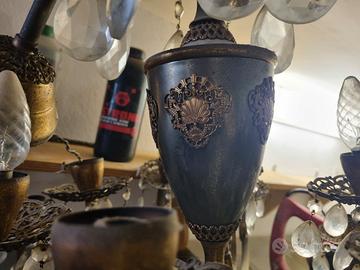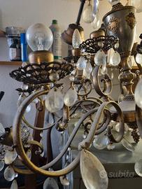 lampadario vintage con cristalli, da sistemare un braccio che si muove,qualche cristallo mancante