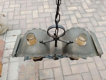 vendo lampadario vintage in ferro battuto con 2 portalampade attacco e27 e lumi in vetro.