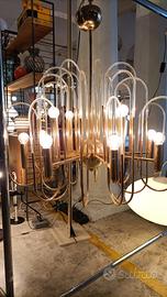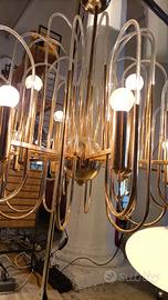 Lampadario originale sciolari astrolab, tutto in ottone con archetti in vetro (tutti presenti + 1 di ricambio), 12 luci a doppio comando, diametro 76 cm, altezza 78. Bellissimo, raro e in condizioni perfette.