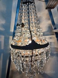 lampadario vintage restaurato stile impero filo elettrico nuovo cristalli integri euro 90