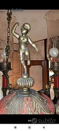 Lampadario vintage anni 50 a 6 luci, stile liberty. Racchiude le lampadine in paralumi di dimensioni importanti. I decori hanno la massima espressione nel "putto" collocato al centro. Nel complesso lo stato è più che buono e per motivi di delicatezza deve essere ritirato in loco. Smontaggio e trasporto a carico acquirente