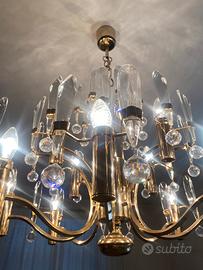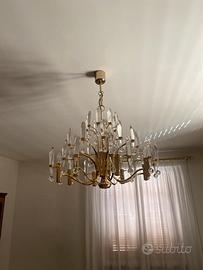 Lampadario vintage stile Palwa anni '70 - Ottone e cristallo - Design tedesco