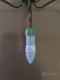 Lampadario di stile "Spider" in tipico stile italiano "Stilnovo" anni '50. E' caratterizzato da una struttura a 6 bracci sottili ricurvi in ottone o metallo laccato verde. Altezza cm 67 Larghezza lampadine comprese cm 70 Nella parte finale dei bracci sono stati messi dei piccoli tubi in plastica grigia prima delle lampadine per coprire forse delle parti mancanti, viisivamente sembra ugualmente ottimo compromesso. i sei piccoli tubi e le sei lampadine a led con attacco E14 sono comprese. Il lampadario è perfettamente funzionante. Le foto descrivono perfettamente la condizione in cui si trova e tutti i pezzi di cui è composto il lampadario, pertanto si vende come "Visto e Piaciuto" e non si accetta il ritorno per motivi estetici o pezzi mancanti. Se hai domande non esitare a contattarmi, rispondo il prima possibile.