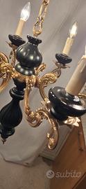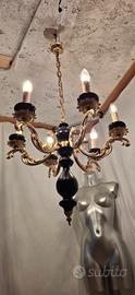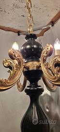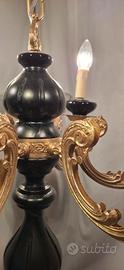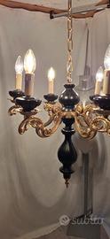 Lampadario vintage completamente restaurato in perfette condizioni funzionante. In legno e metallo, colore nero ⚫️ oro. Diametro 56cm. Spedisco con UPS o BRT. Consegno gratis in raggio di 20 km.