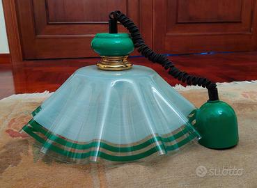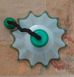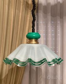 Lampadario vintage design realizzato in vetro ondulato (lavorazione Murano) con motivo verde e inserto dorato.