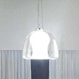 Naranza sospensione è un lampada progettata e prodotta da Vistosi. Vero capolavoro di design e illuminazione. La lampada Naranza è caratterizzata da una struttura portante in metallo cromato, che non solo aggiunge eleganza alla lampada, ma ne garantisce anche la durabilità nel tempo. Il suo diffusore a forma di campana è realizzato in vetro trasparente lucido, permettendo alla luce di diffondersi in modo uniforme e creando un'atmosfera luminosa e accogliente.