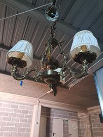 lampadario in ferro fuso con copri lampadine in stoffa pregiata stile classico completo applique al muro.