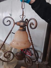 lampadario x ingresso o bagno arte povera in vetro e ferro battuto