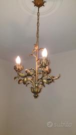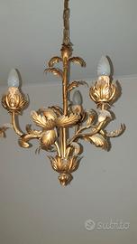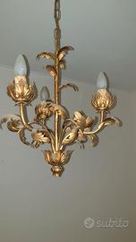 Lampadario in ferro struttura leggera color ottone / oro Con 3 bracci Braccio da 18 cm Diametro 37 cm Alto 45 cm + catena da 50 cm = totale 95 cm Attacco E14