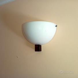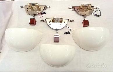 Vendo 3 lampade da parete a luce diffusa e riflessa Venini modello Victor. Eleganza e fascino della produzione Venini celebre marchio italiano noto per le sue raffinate creazioni in vetro soffiato Diffusore in vetro soffiato di Murano Bianco lattimo, cubo inferiore in vetro trasparente color salmone scuro. Montatura in acciaio cromato. Portalampada in ceramica. Monta lampadina alogena o led r7s 115 mm. Dimensioni (cm): Larghezza: 30 - Profondità: 15,5 – altezza: 14 più cm. 5 cubo inferiore (totale altezza cm. 19). Ottime condizioni estetiche e funzionali. Designer: Venini (firma incisa). Presente la firma della produzione. Questo pezzo è stato attribuito sulla base di documenti d'archivio, come cataloghi d'epoca o altre fonti letterarie. Prezzo richiesto: € 280. Il prezzo indicato si riferisce ad un solo oggetto, per l’intero set € 800. Consegna a mano zona Treviso città