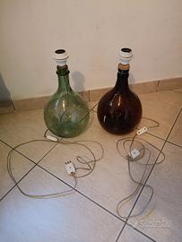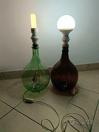 Lampade a forma di bottiglione. Dimensioni: Altezza con portalampada 40cm Diametro bottiglione: 22cm quello verde, filo di 200cm con interruttore; 20,5 cm quello marrone, filo di 220cm con interruttore. Funzionanti, come da foto.