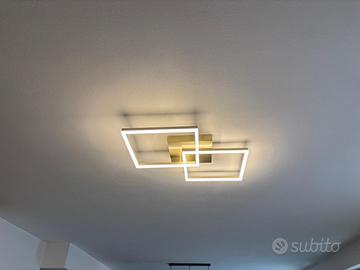 Vendo per inutilizzo coppia di lampade a led x soffito, comprate come da scontrino nel Aprile del 2019. Colore oro opaco, temperatura luce 3000K. Sono senza le scatole originali ma in perfetto stato. La lampada rettangole misura 92x32 e i cavi sono lunghi circa 45cm. L’altra misura in totale 65x65, i singoli quadrati sono 37x37 ed è attaccatta al soffitto. Ritiro a mano a Vallese di Oppeano. Prezzo indicato per la coppia. Vendibili anche singolarmente ma precedenza per la vendita insieme.