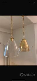 2 Lampade a sospensione di vegro di murano, 1 di color oro e una trasparente. Prezzo 120 euro per la coppia Possibilita' di spedizione
