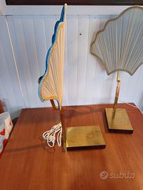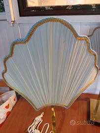 lampade da tavolooabat-jourvintage con un caratteristico paralume plissettato a forma di conchiglia e una base in ottone lucido. Questo stile è spesso associato al design italiano o Hollywood Regency deglianni '70o'80.