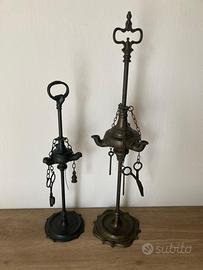 Set di 4 lampade ad olio fiorentine, acquistate da antiquario. Vendibili anche separatamente. Le 2 più antiche hanno 2 e 3 beccucci e sono anche le piu rare.