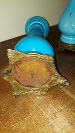 Lampade ad olio Francesi d'epoca, in vetro opalino, altezza 60 centimetri