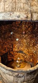Lampade artigianale realizzata con vecchio caratello da vinsanto, internamente rivestimento con rama tipo "carbora", doppia lampada.