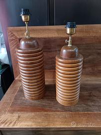 Coppia di basi in legno in massello di teak, per lampade da tavolo in stile Mid Century Modern, gia predisposte con portalampada regolabile in ottone , provenienza Indonesia, risalenti agli anni '70