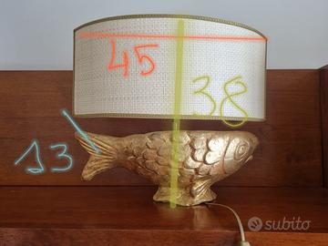 Nr.2 lampade da tavolo con base a forma di pesce tinto oro. Le misure sono in foto. Vendute singolarmente a €39 e €49. Ritiro a carico dell’acquirente in centro Lecco.