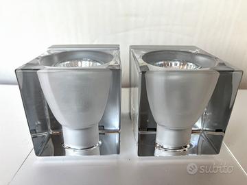 Vendo coppia lampade da parete o soffitto Fabbian Cubetto orientabile, le lampade sono in ottime condizioni, veri cristalli al piombo 24% perfetti senza sbeccature o incrinature, attacco lampade G10, monta sia lampadine alogene che led, lampadine incluse. Le lampade di listino costano oltre 250 euro cad. le cedo a 200 euro entrambe. Richiesta non trattabile.