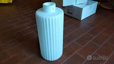 Due lampade da appoggio : una lampada a lanterna con base in peltro, 20 euro ; una lampada a sfera in vetro trasparente e sfumatura gialla, 20 euro vetro coprilampada cilindrico, 5 euro.