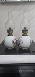 Coppia di Lampade da Comodino in Autentica Porcellana di Limoges – Francia, XX Secolo – Dipinte a Mano con Dettagli in Oro 24 kt