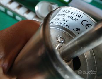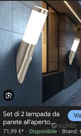 coppia lampade da esterno, da parete, in acciaio satinato con vetrini bianco opaco. lunghezza 32 cm diametro 5 cm nuovissime, no scatola