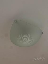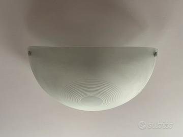Lampade iconiche realizzate in vetro satinato con decoro concentrico e struttura in metallo, utilizzabili sia come plafoniere che come applique da parete.