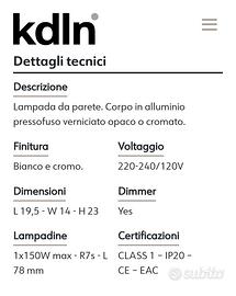 Causa trasloco vendo coppia di lampade da parete Kundalini Kdln Frame. Corpo in alluminio pressofuso verniciato bianco opaco. Lampadina 150W max - R7s - L 78 mm. Condizioni ottime. Vendo in coppia a 200 euro totali. Consegna a mano, non spedisco.