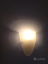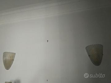 Due raffinate applique vintage, marca Sciolari, in vetro dorato con costolature. Adatte a ingresso o a corridoio di abitazione o studio di professionista. Anni '60/'70. Altezza 30 cm, larghezza 25 cm.