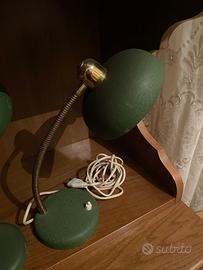 Coppia di lampade da tavolo verdi anni 60 in ottime condizioni Stelo snodato e finitura cappello in ottone. Ottimo pezzo da modernariato vintage. Diametro base 14cm Diametro cappello 17cm Altezza 35cm