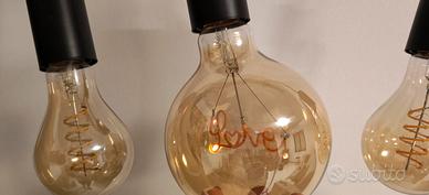 lampada da soffitto in legno con tre fili di luci. due più piccole e la centrale con la scritta love più grande luce calda non ha difetti usate per ufficio stagione. sono 2 pezzi vorrei vedere insieme