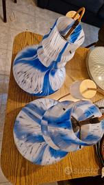 Due bellissime lampade da soffitto anni 60. Colore blue bianco . Dimensioni 36 cm altezza e diametro 25 cm.