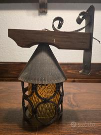 4 lampade originali anni '70 in ferro battuto su legno con vetro cattedrale giallo come paralume . Adatte per taverne o bar/ trattorie o osterie per ricreare un'atmosfera calda. perfettamente funzionanti.