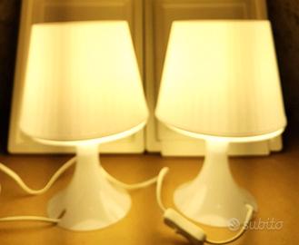 Vendo, causa trasferimento per cambio abitazione n.2 Lampade da tavolo Ikea bianche complete di lampadine a LED E14 globo bianco opalino al prezzo di 6 € cadauna. Condizione pari al nuovo.