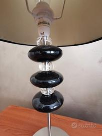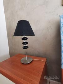 coppia di lampade da tavolo in acciaio e stoffa colore grigio e nero.