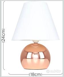 vendo due lampade da tavolo con effetto touch nella parte rotonda. Perfette per comodini. Color rame e paralume bianco. Supportano lampadina E14 anche dimmerabile max 40W. dimensioni come da foto 18 x 24 cm