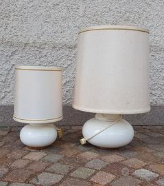 Vendo 2 lampade da tavolo ad incandescenza usate in buono stato in stile retrò, una è più grande dell'altra; sono funzionanti e totalmente bianche.