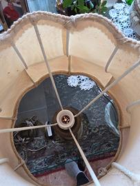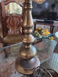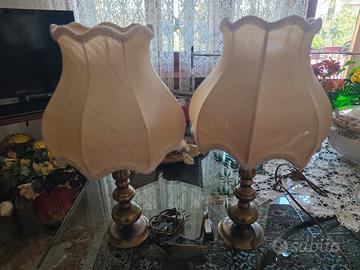 vendo due bellissime lampade da tavolo vintage in ottone con paralume lavorato. Un pezzo d'arredo perfetto per chi ama lo stile retrò e i dettagli ricercati. Funziona perfettamente e diffonde una luce calda e rilassante La base è bellissima e integra, mentre il paralume in pizzo e tessuto è usurato dal tempo e necessita di essere sostituito o restaurato. Ideale su un comodino o una scrivania antica. Disponibile anche per ritiro a mano 65€ la coppia altezza cm. 41