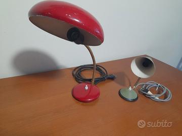 vendo due lampade da tavolo vintage. la verde è di altezza 20 cm circa. la rossa 40 cm .
