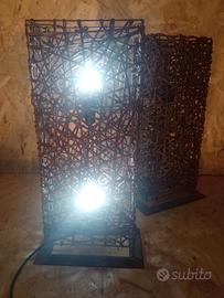 Lampade Da Terra o da Comodino.Coppia di lampade da tavolo o da terra di forma rettangolare verticale, con doppio punto luce con attacco e14. Le lampade sono realizzate filamenti di giunco su struttura metallica. Vengono vendute senza lampadine, sia singolarmente che la coppia. Il prezzo si riferisce alla coppia. Non esitate a chiedere.