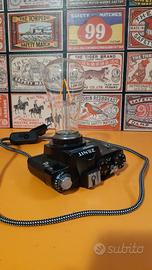 Creazione lampade da tavolo con vecchia pialla manuale da falegname e reflex analogiche alloggiabili anche su cavalletti fotografici.