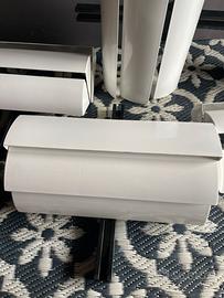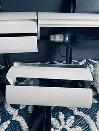 4 applique da parete, originali Stria Artemide, anni ‘70 (design Ernesto Gismondi) piu’ un pezzo omaggio, poiché danneggiato, solo per chi acquista il lotto intero. Metallo e plastica. Perfette. Prezzo indicato per la singola lampada. Sprovviste di scatola originale. Spedizione in assicurata o corriere a carico dell’acquirente.