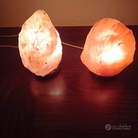 Cedo 2 lampade di Sale dell'Himalaya con base in legno complete di lampadine, altezza 16/19 cm.ca