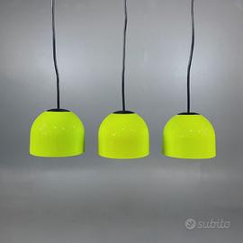 Lampada a sospensione a luce diretta. Corpo in alluminio, disponibile nelle finiture bianco lucido, nero lucido e verde lucido. Schermo antiabbagliamento. L'apparecchio è dotato di due differenti anelli con finitura verde e nero, che hanno la funzione di fissare il vetro temperato di sicurezza.