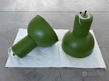 Vendo 2 lampade industriali restaurare e verniciate a nuovo color verde tortora/militare