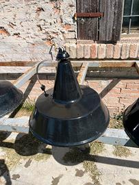 Lampade in ferro laccato nero e bianco intero, impianto elettrico non funzionante ( il prezzo aumenta in caso si voglia attivare l'impianto e riverniciare esternamente) colore originale qualche bolla di ruggine, prezzo trattabile, vendibile in stock