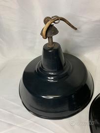 Coppia originale di lampade industriali in metallo smaltato nero, risalenti agli anni ’50/’60.