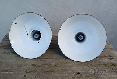 Lampade industriali vintage , in ferro smaltato , diametro 40cm , cavo elettrico nuovo (rivestito in tessuto) , portalampada nuovi (in ceramica) , vendo solo in coppia .