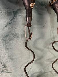 Lampade industriali di officina militare. Anni 50/60 . In gomma dura e metallo . Doppio gancio . Impianto da rivedere.n. 3 pezzi